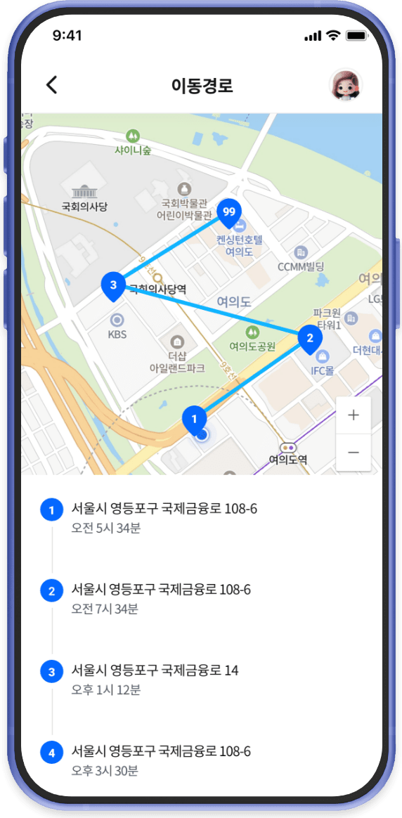 어디를 다녀왔는지 쉽게 파악할 수 있어 학교 외 활동이나 예상치 못한 이동을 모니터링할 수 있어요.