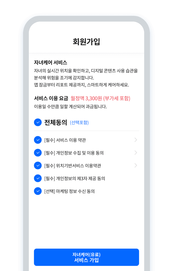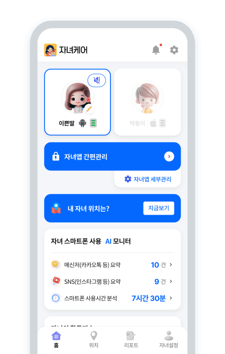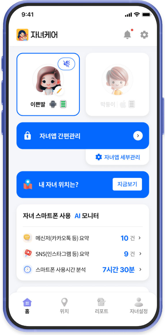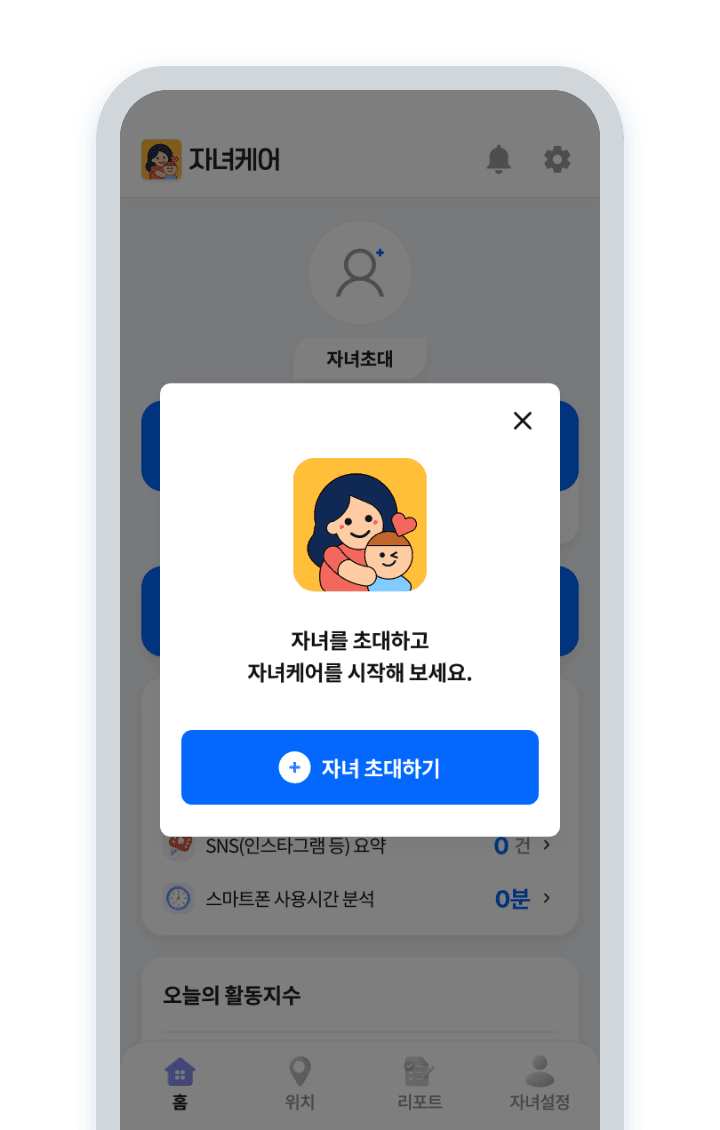 자녀의 안전과 건강한 디지털 습관, 자녀케어로 시작하세요.